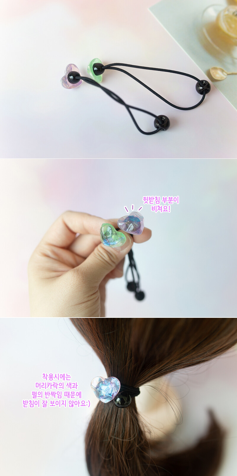 하트 조약돌 모양 머리끈이에요:)
